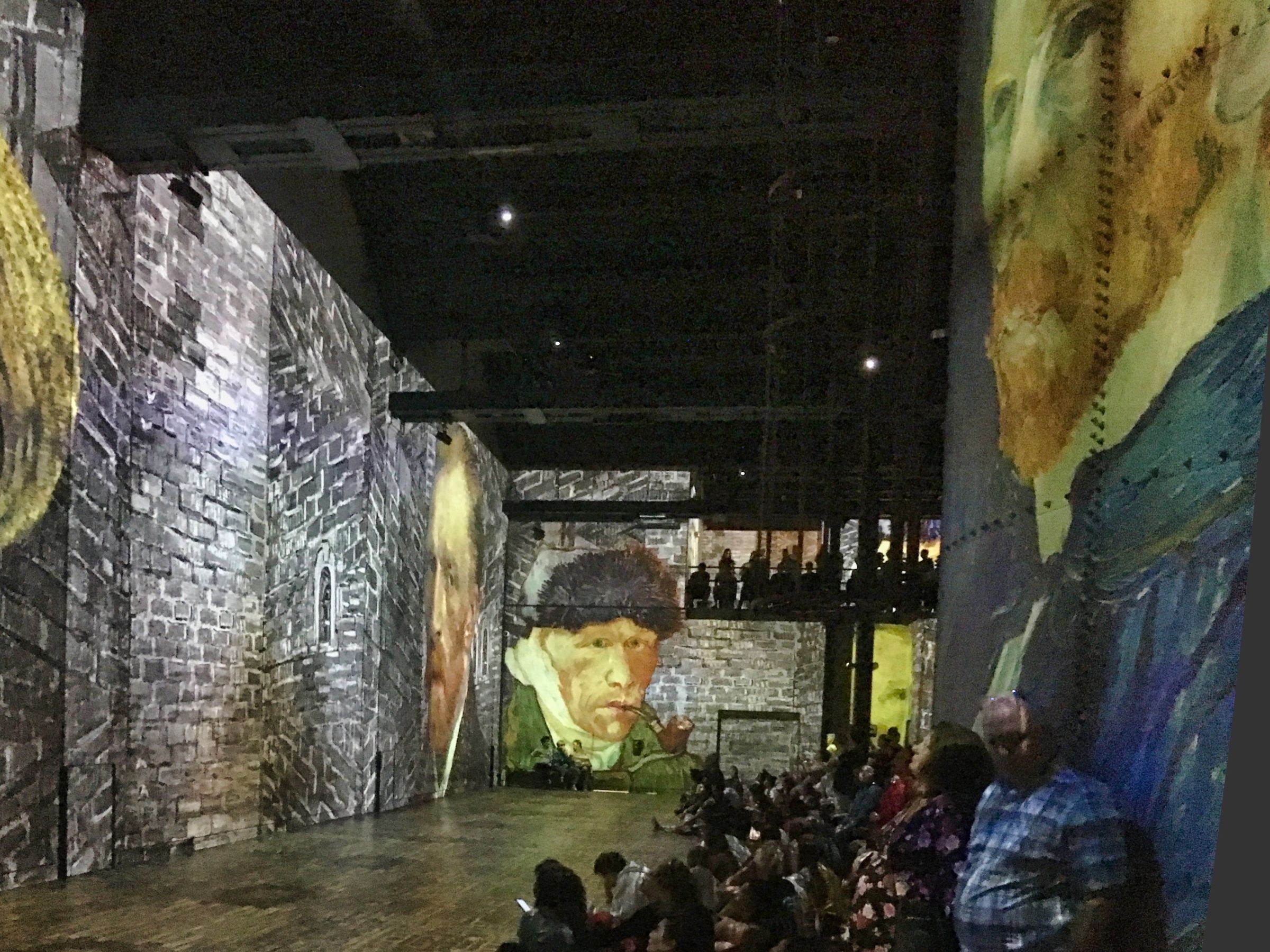 Although we were only staying one night for the concert, we had planned visits to two attractions while we were in the city. So, in the afternoon we took off to the Van Gogh exposition at L’Atelier des Lumières (which presents these art expositions regularly). This was promoted as a sort of multimedia experience and had received rave reviews. It was superb. Held inside a large open ‘atelier’ (workshop) the walls, floors and ceilings were used to present a series of panels where Van Gogh’s works were displayed as moving images, parts of his paintings animated and historical material displayed.