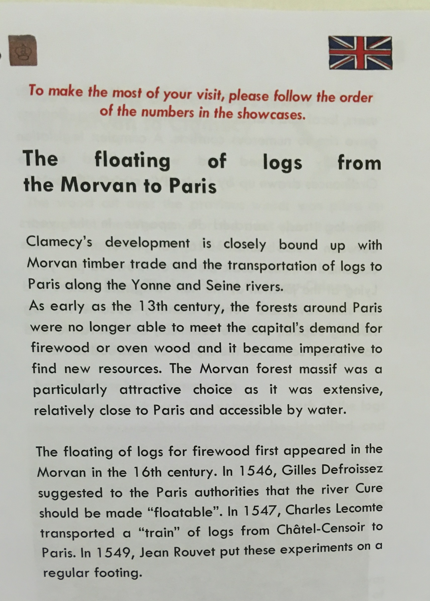 The second aspect was a section dedicated to the ‘Flottage’. To cover this adequately would make this a very long article so, we’ll summarise a few key facts; at the end of this blog is a copy of a good summary that was available at the museum and a series of videos that cover both the history and cultural significance in addition to a float from Clamecy to Paris in a 70 m raft recreated using traditional methods.