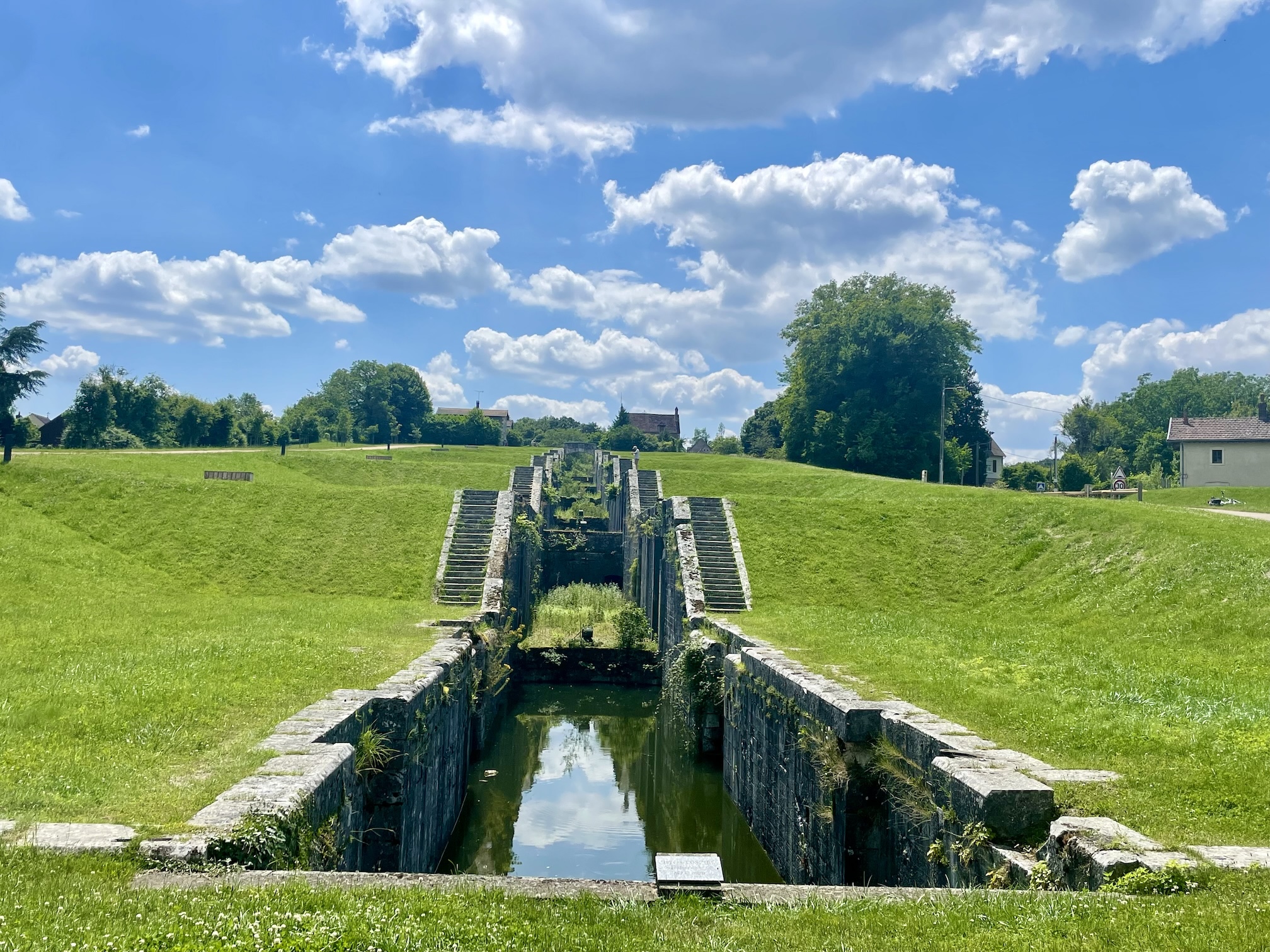 Briefly, when the Briare Canal was first constructed, this section required quite a big climb and seven locks were built in sequence.