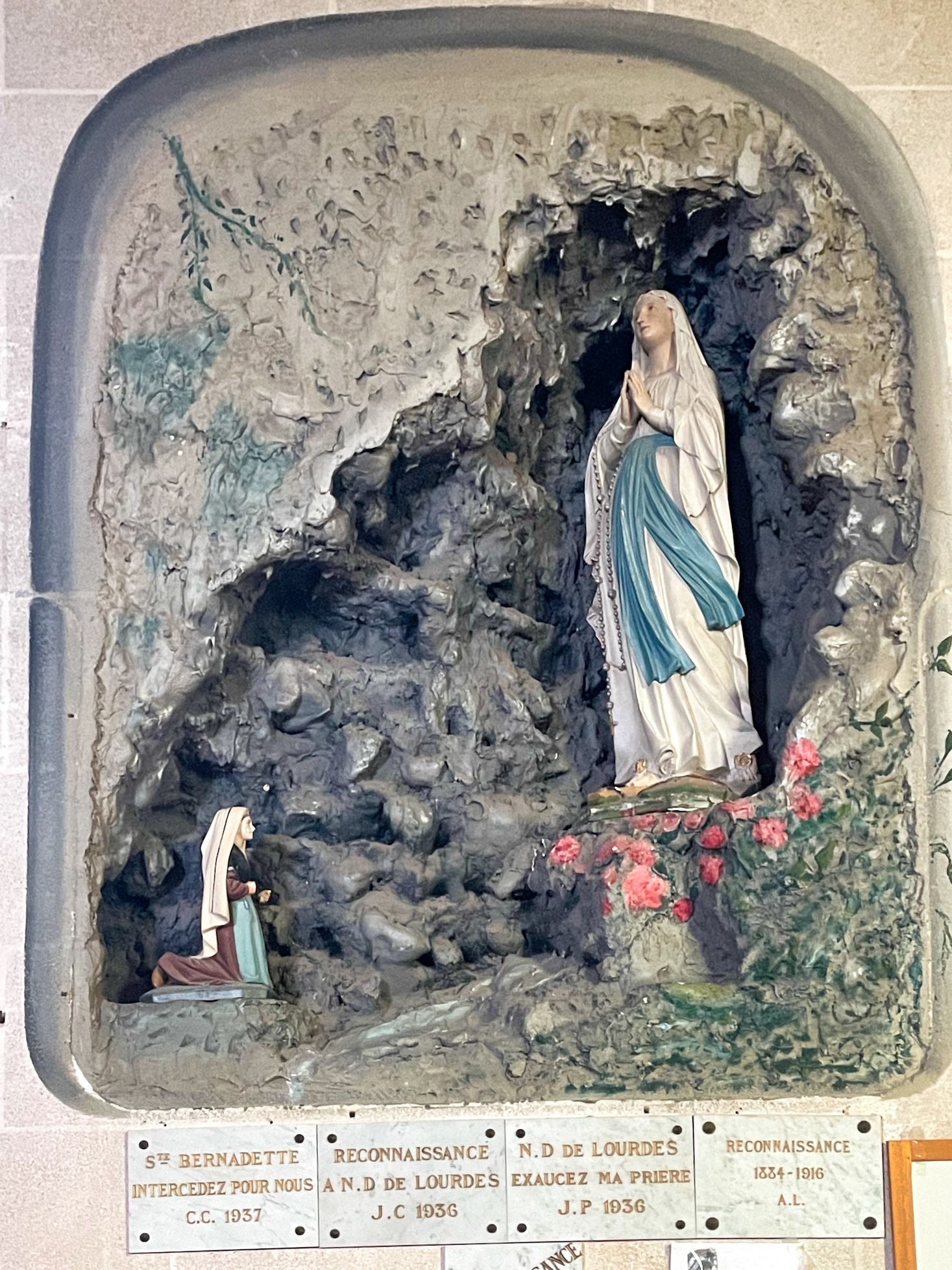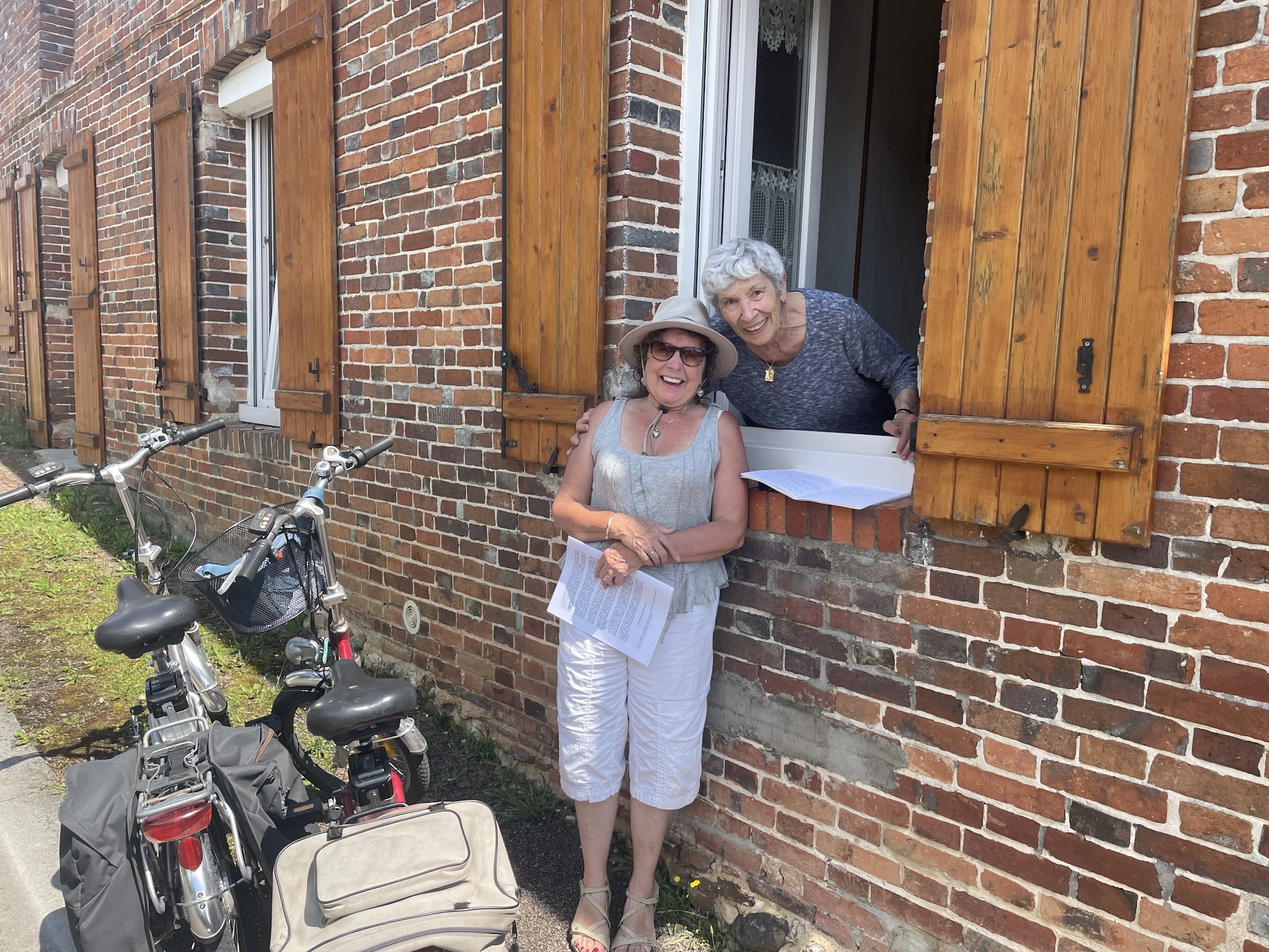 and that the key to the church was provided by an old lady who lives across from it. Up we went and sure enough, she popped open the window and hailed us. We (well Lisette) had a long chat with her about the town, the church and her life during the war